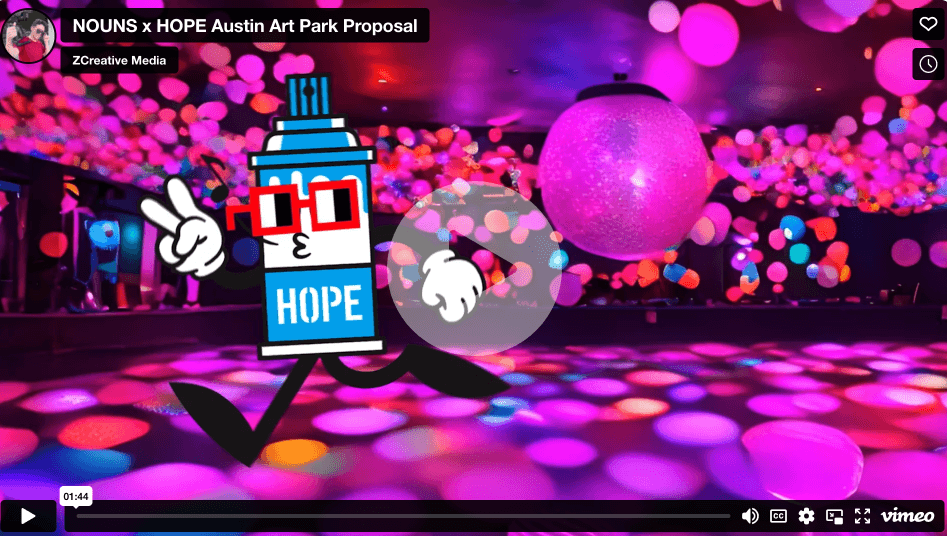 By adding HOPE Outdoor Gallery Art Park to the funded arts projects through the Nouns Virtuous Cycle we can collectively highlight, empower, and support ongoing growth of the Creative Community & Nounish culture for years to come while also establishing a special home for Nouns culture in Austin, Texas.