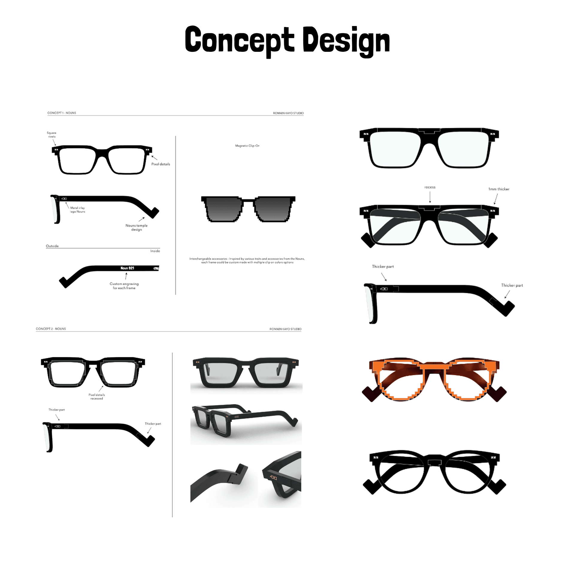 Hidden Gems: Embed secret messages, Nouns references, or hidden pixel art surprises within the glasses or marketing materials. Spark community discussions and treasure hunts.