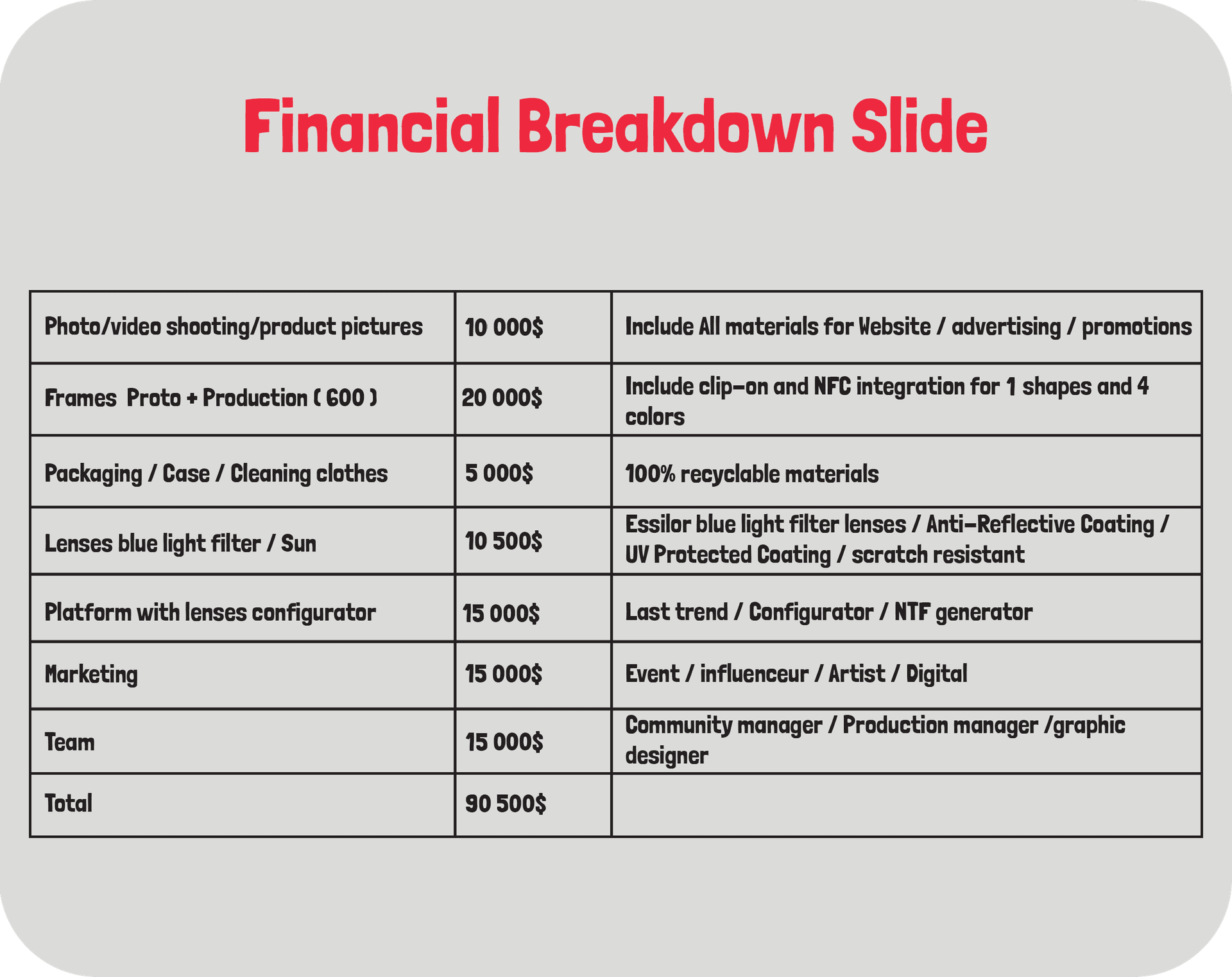 -New Funding Requirements: 90 500 USDC (Financial breakdown bellow)