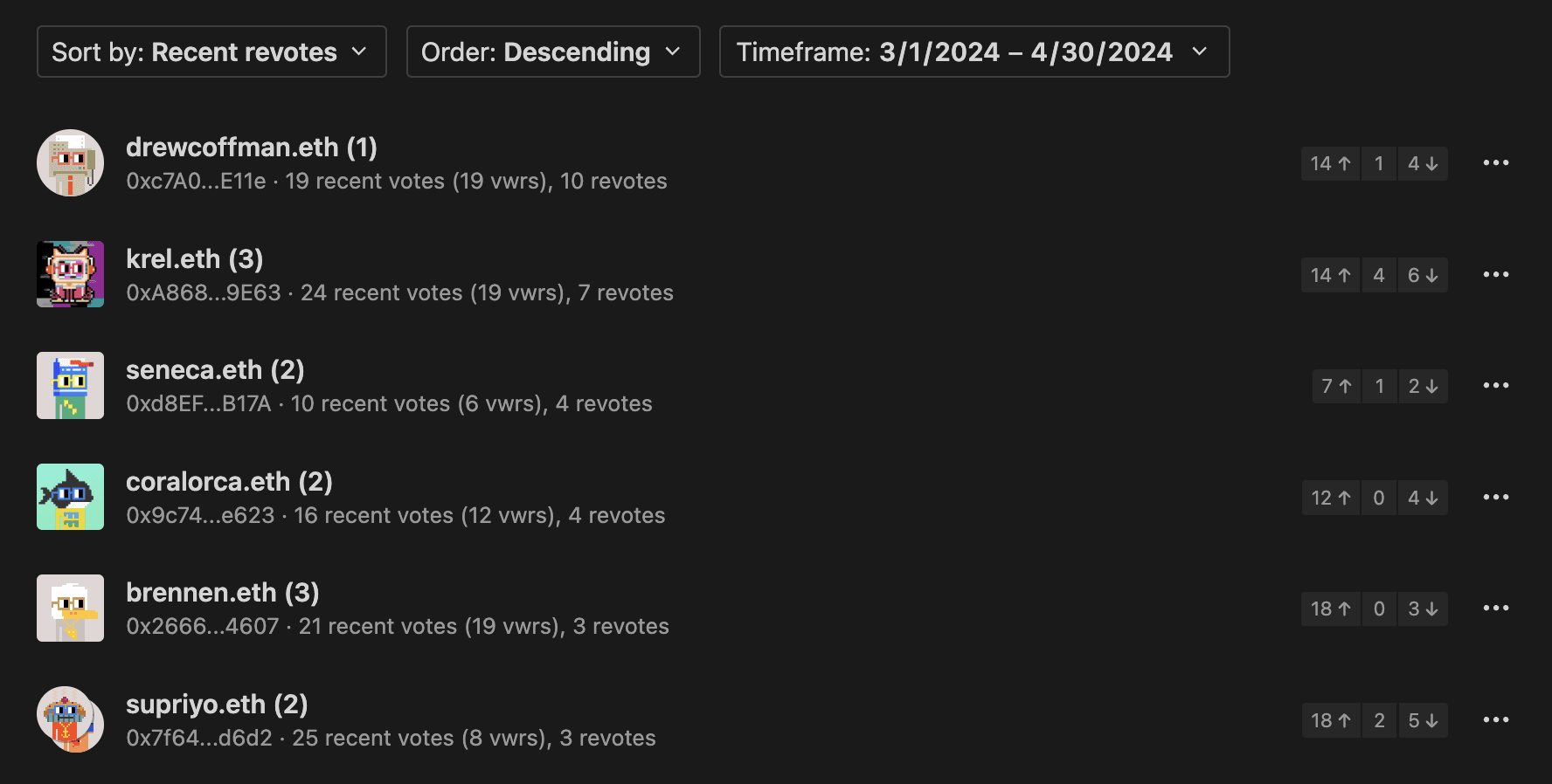 Secondly, my hope is that it sets a soft precedent that the DAO recognizes, and is willing to reward, participants for excellence in governance. Here, VWRs serve as the primary ”Proof of Work” and Revotes is a good trailing indicator. [2]