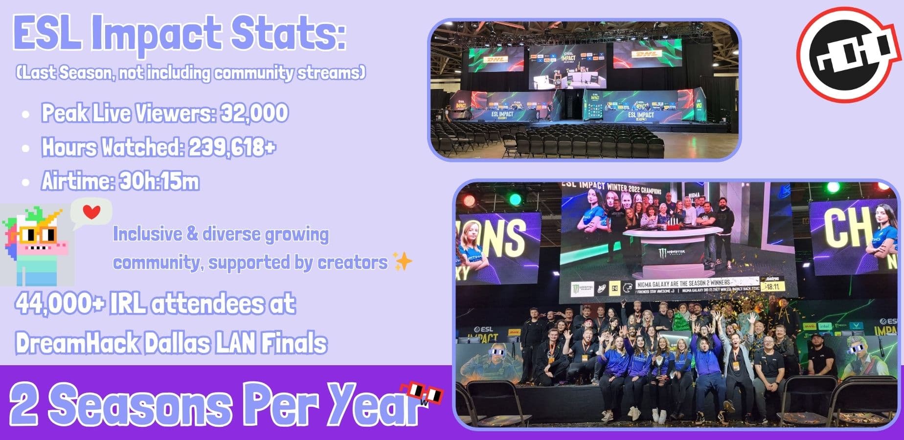 Also, when we make it to LAN events like DreamHack, we'd love to help host a workshop/booth with Nouns Esports for women and new competitors aspiring to enter professional gaming.