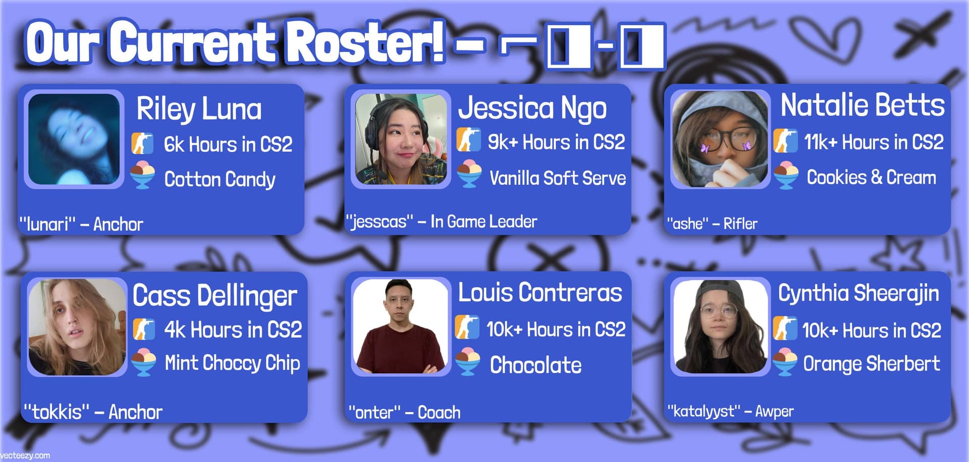 Originally forming as "Category 5" in May '23, we sought to storm the female esports scene with a fiery, feel-good story of friends who found success doing what they love most! After a few tournament wins, we knew we could accomplish something great.