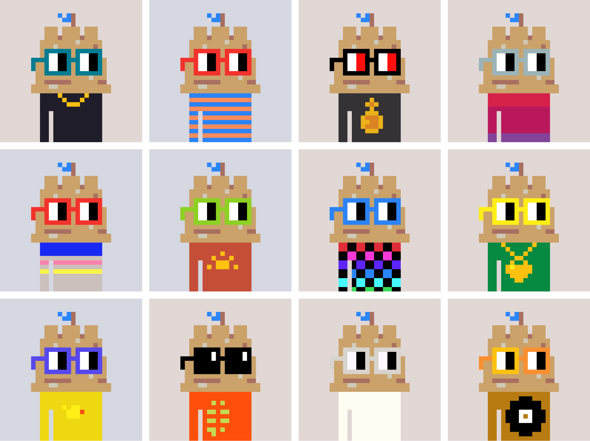 Here are some auto-generated combinations of the new Sand Castle head with existing Nouns parts:
