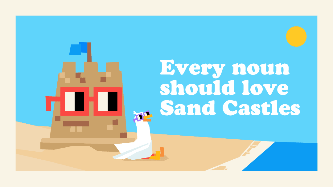 The sand castle trait fits perfectly into the Nouns collection because it captures this essence: the freedom to create and experiment, play, imagination, and creativity combined with experimentation, construction, accessibility, and universality.