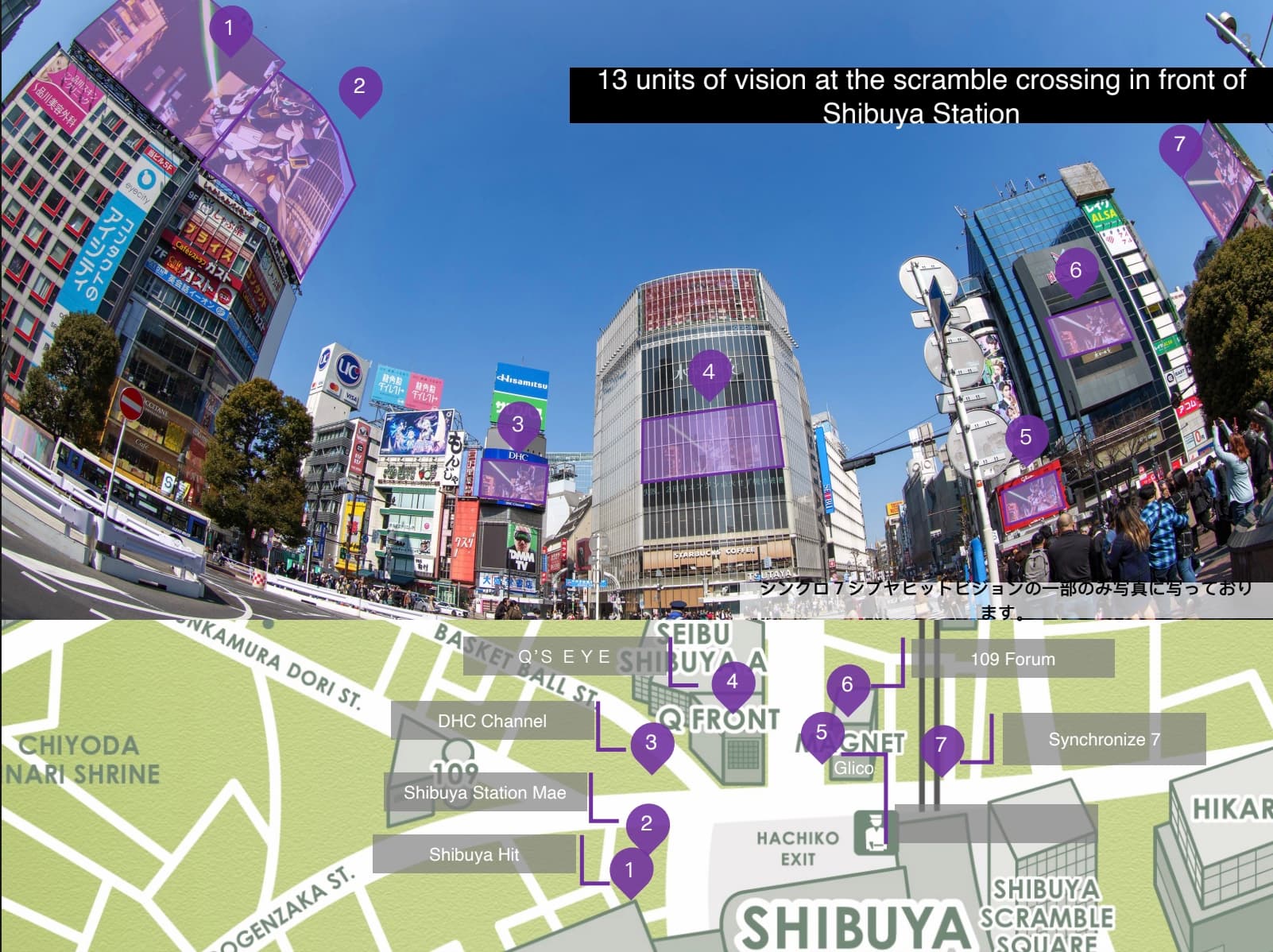 The planned 7-day placements include a 15-second movie synchronized across 4 prime Shibuya Scramble placements (see graphic above) for 15 hours per day, for a total of 2 videos per hour / 30 videos per day / 210 videos per campaign.