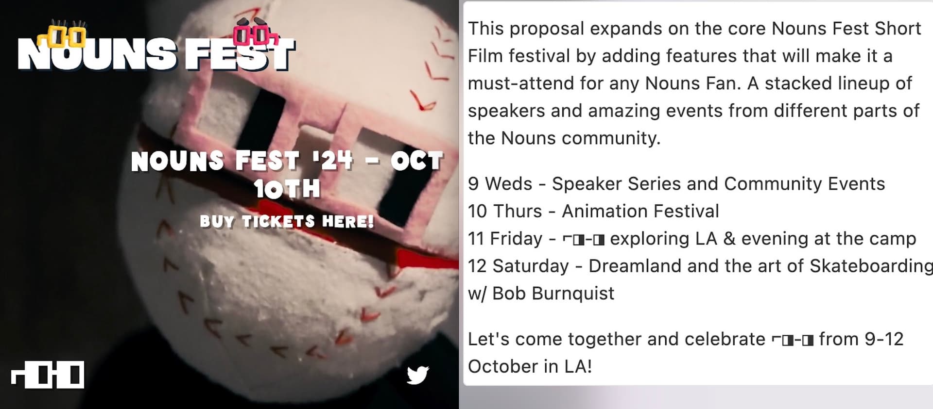 The Mini Documentary storyline will culminate in a Best trick Noggle Session with the world's best skateboarders on October 12th, bringing dreamland onchain in the most nounish way.The Nouns activation will remain onsite for continued content creation with a constant onboarding effort to all who cruise by to skate! It's a 12 month Nouns naming rights support of Dreamland.