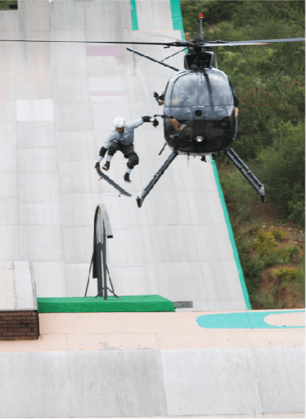 The intent is to raise funds and awareness for public impact with inspirational story telling and content that directly funds and connects to public work being done in Brasil. The location is a private film set for a high level skateboarding event to spread the Nouns Brand worldwide.
