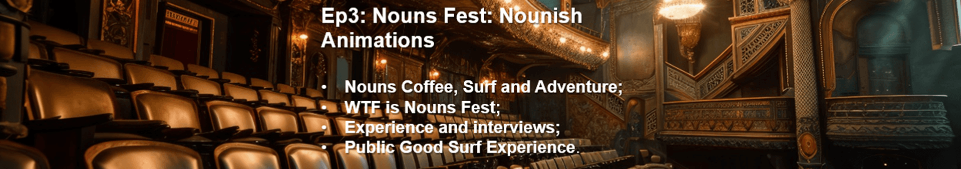 We will produce high-quality content with team member Samira Chalom, screenwriter and director of prop 512, and a professional filmmaker, Gustavo Vieira, highlighting the Nouns logo. This pre-production phase aims to raise awareness and start integrating more Web3 content for Web2 audiences, ensuring they better understand our mission when they watch the episodes.