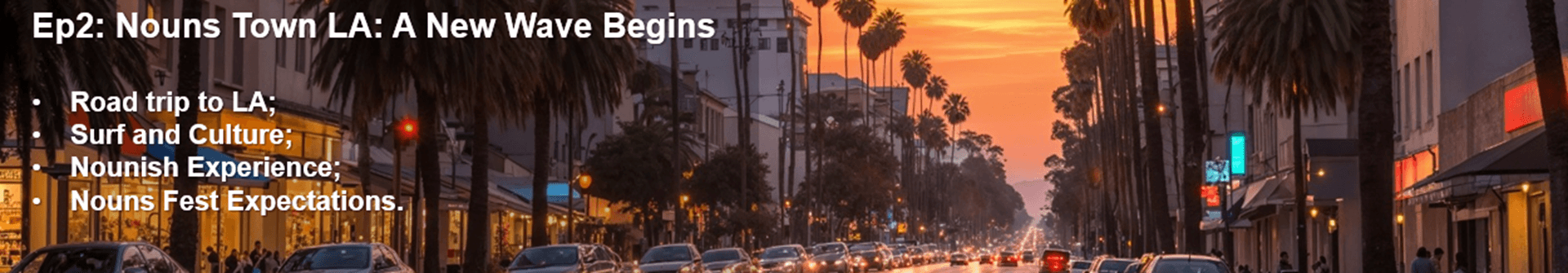 We want to highlight IRL Nounish experiences and showcase community works during a surf/road trip along the California coast. Our goal is to introduce Nouns to our audience in an engaging way, not just through interviews but as a comprehensive trip experience, such as Nouns Fest, Nouns Town, Noun Coffee and involve the community through interviews and participation in the episodes.