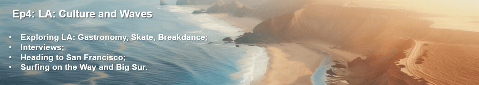 Through a 23 day road trip from San Diego to San Francisco, we are going to experience all the nounish things we can participate in while discovering the beautiful nature and waves along the California coast.