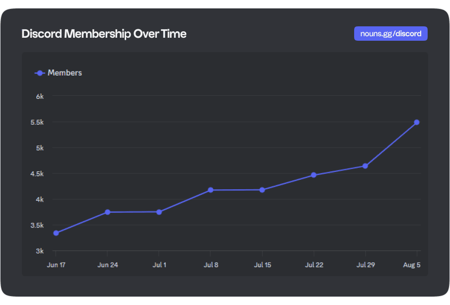 Given the strong momentum we've seen since the launch of our rounds program nearly two months ago, we're optimistic about delegating Nouns through this initiative. The rounds have successfully doubled our Discord community and added over 5,700 new accounts to our site.
