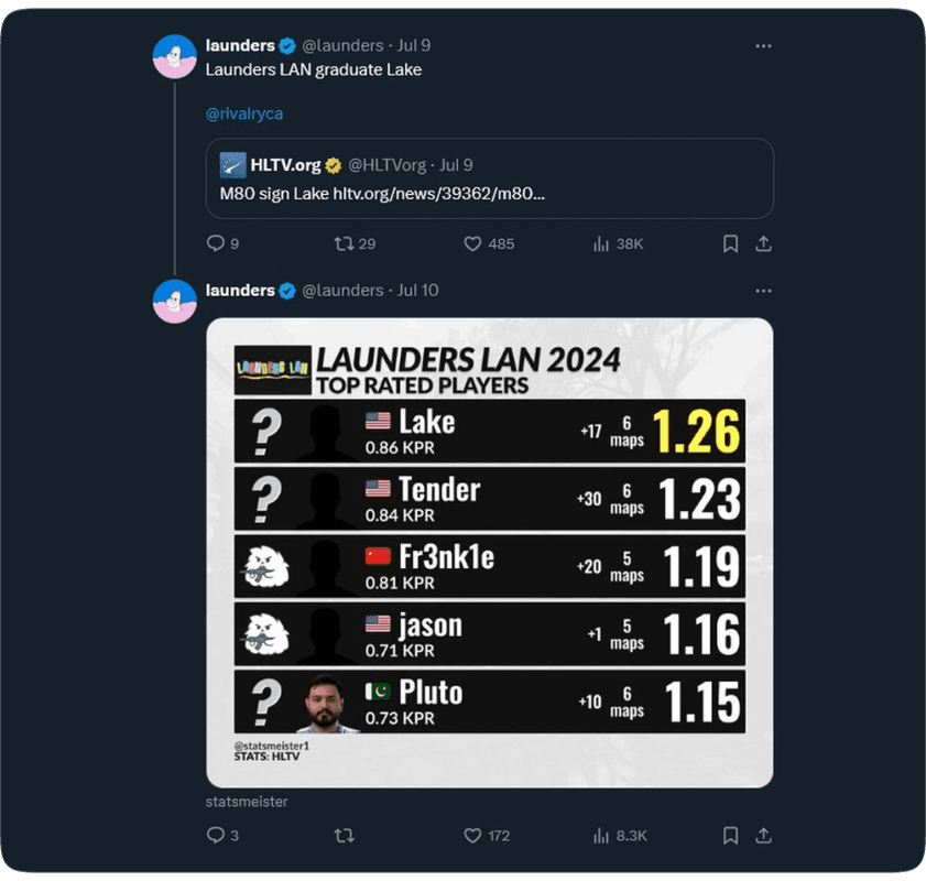 Amazingly, last month a top performer from Launders LAN 1 was already signed by premier North American organization, M80: