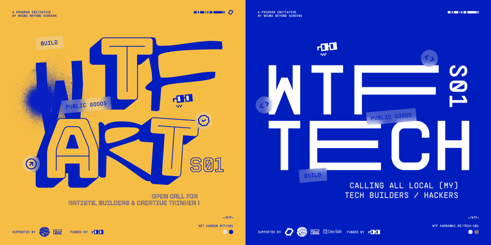 WTF, short for “Want to Fund”, offering a mini grant funding to local artists & builders, enabling them to create, innovate, and present their new physical ideas to Nouns. The main goal is to give them a financial boost while bringing together Malaysia’s creative minds from various background to build physical products with Nouns and capture the global spotlight.