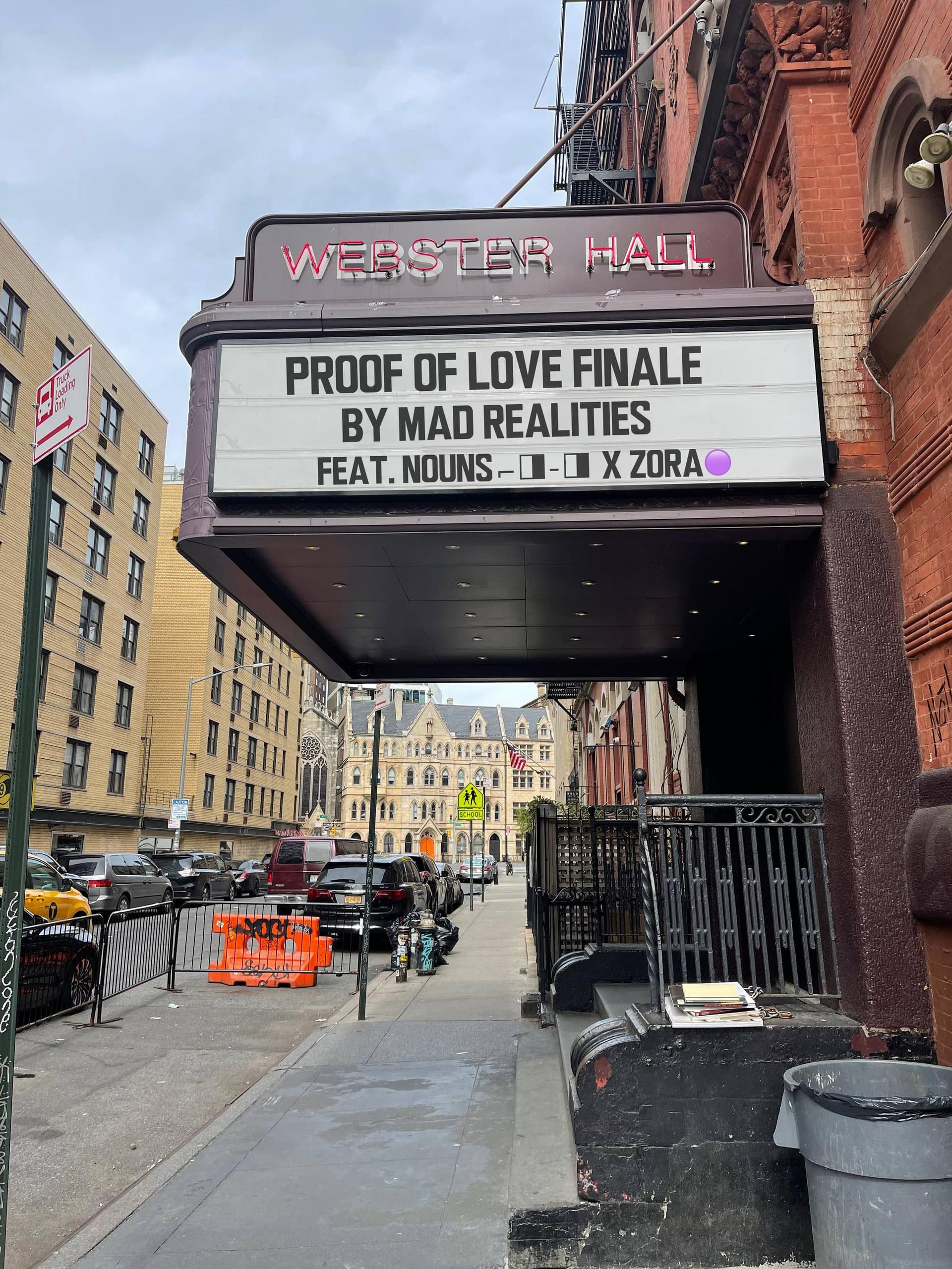 Marquee placement at Webster Hall (think MAD REALITIES’ PROOF OF LOVE Presented by ⌐◨-◨ x **🟣)