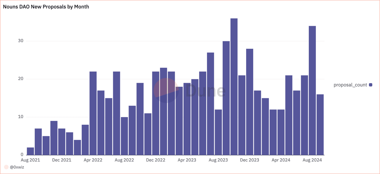 Nouns has struggled to grow proposal inboundTLDR: 95 ETH to support the development of Wand. A project aiming to scale onchain governance through the use of automated help or "agents".