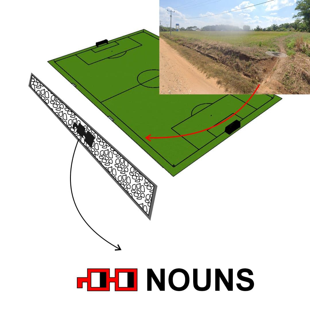 To level a sloping field, it is necessary to add plaster/riprap on the outside of the field facing the road. So because this is a community traffic area, we will put Npggles and Nouns on this riprap so that people are aware and notice that Nouns already exist and help many people.