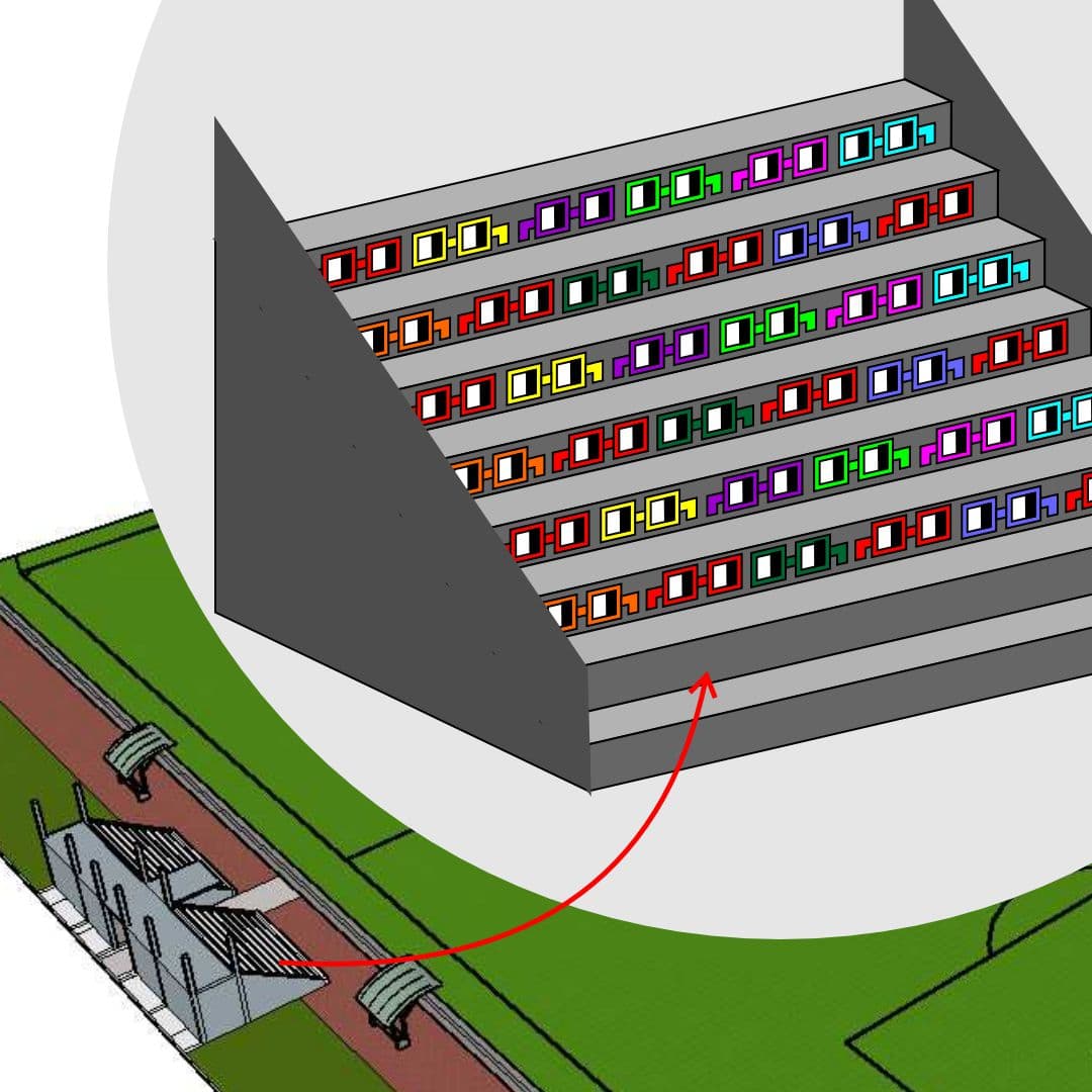 We will paint the tribune in full colors according to the Noggles. with dimensions of 40 cm x 40 cm, each Noggles can be occupied by 2 adult supporters.