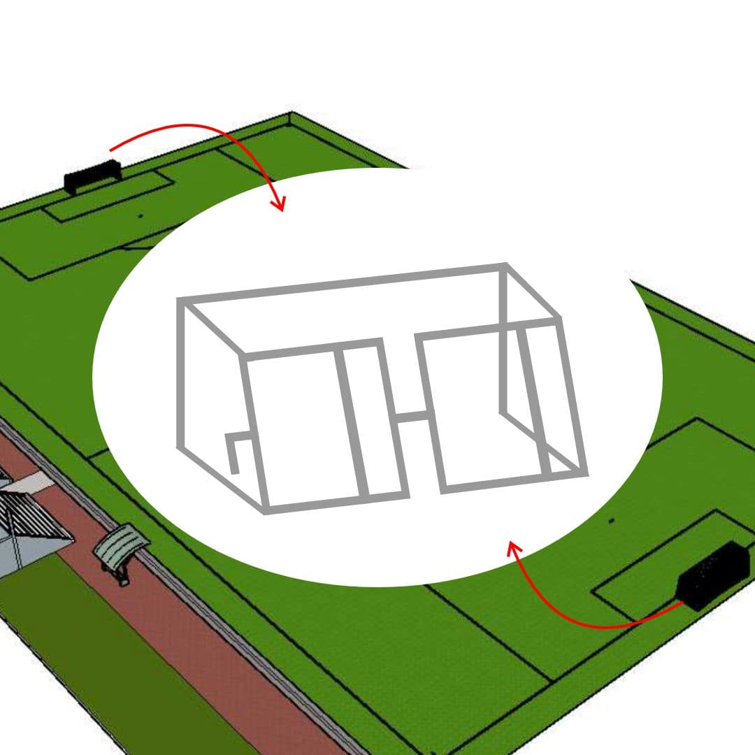 The square area of the goalposts naturally follows the shape of the Noggles, so for this first tourNOUNSment, we created a pattern on the back of the goalposts to liven up the event.