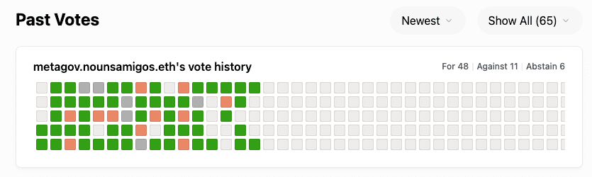 At the beginning of 2024, Wag delegated 3 Nouns to Nouns Amigos. This delegation was unexpected but very well received—being able to vote on-chain as a new governance body was a huge milestone for the Nouns Amigos community.