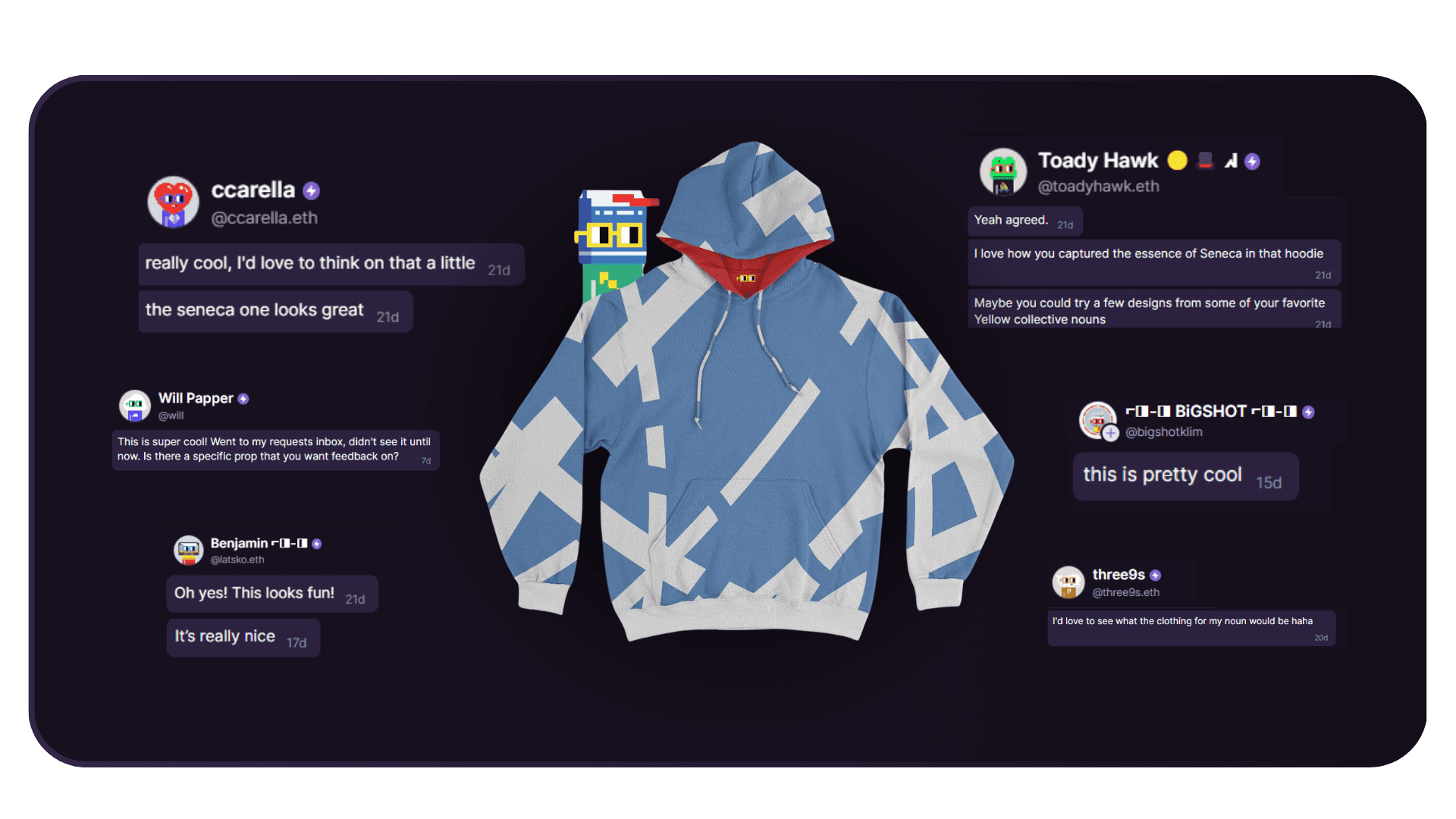 To bring this vision to life, we request funding of 29 ETH, which will enable us to deliver a clothing line of unparalleled quality and craftsmanship, ensuring that each piece is a true reflection of the unique identity of its Noun.