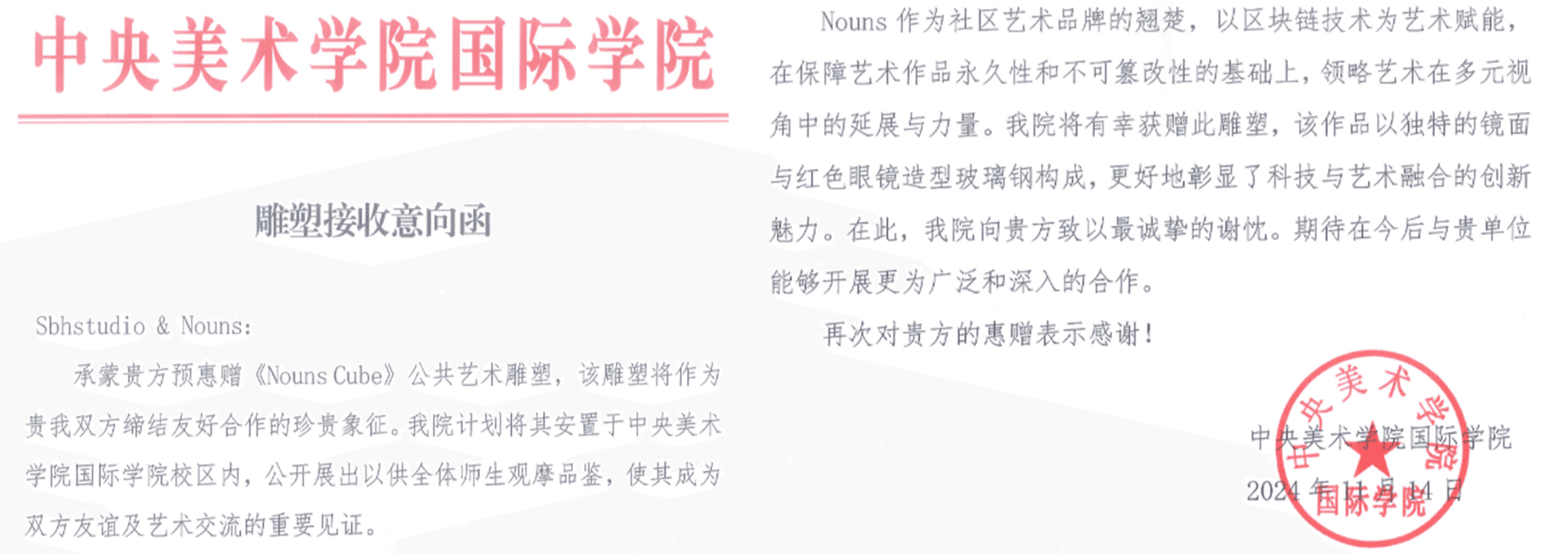 Cultural Visibility: This installation will serve as both an interactive landmark and a dynamic storytelling piece at China’s most prestigious art academy, positioning Nouns as an integral part of the international art scene. Its presence will enhance Nouns’ cultural visibility, elevating the brand's global reputation.