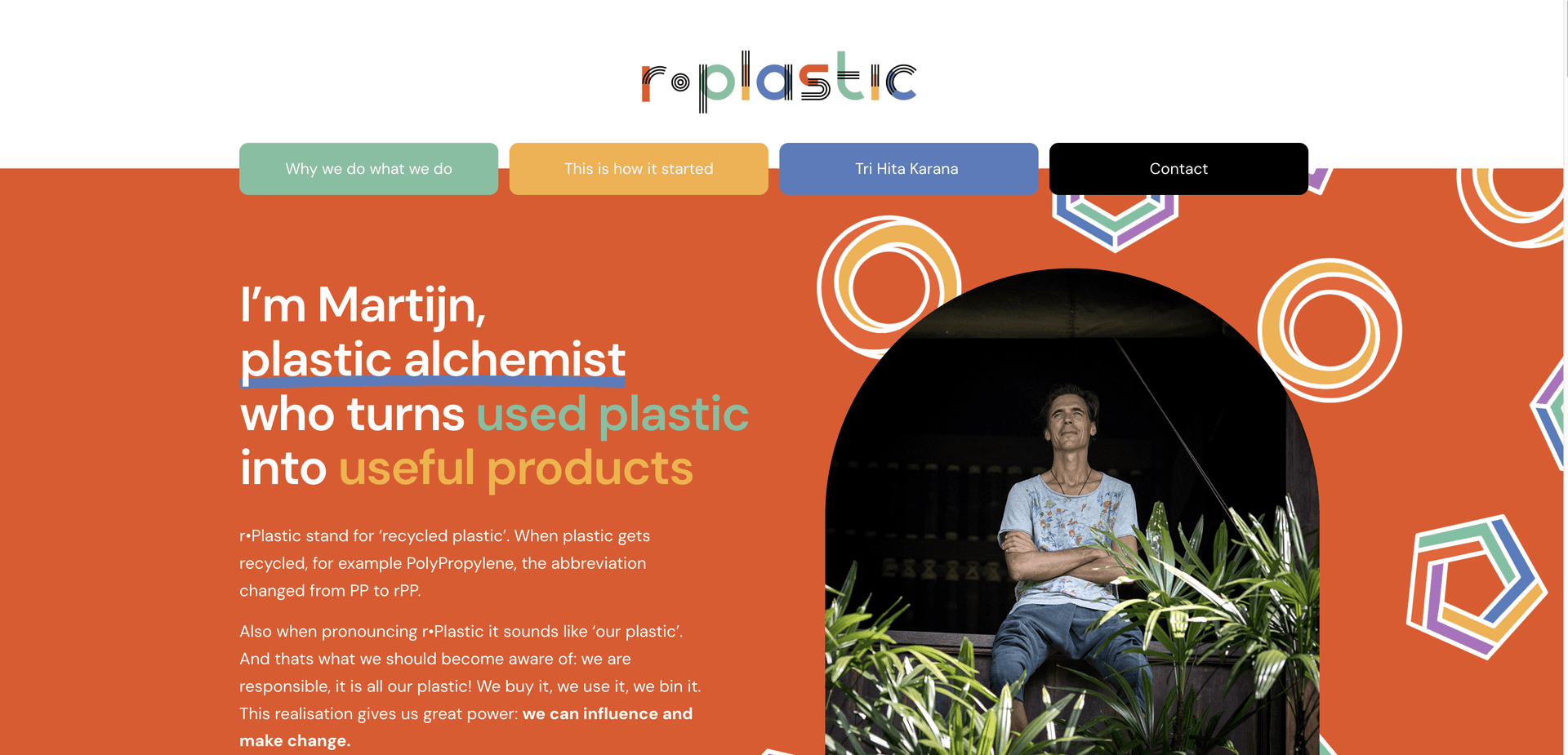 A few years ago, my wife and I moved from the Netherlands to Bali with our three boys, seeking a more balanced lifestyle. While captivated by Bali’s beauty, we were confronted with the reality of plastic pollution. This inspired me to start r•Plastic, a company recycling plastic waste into useful products while educating the next generation about sustainability.