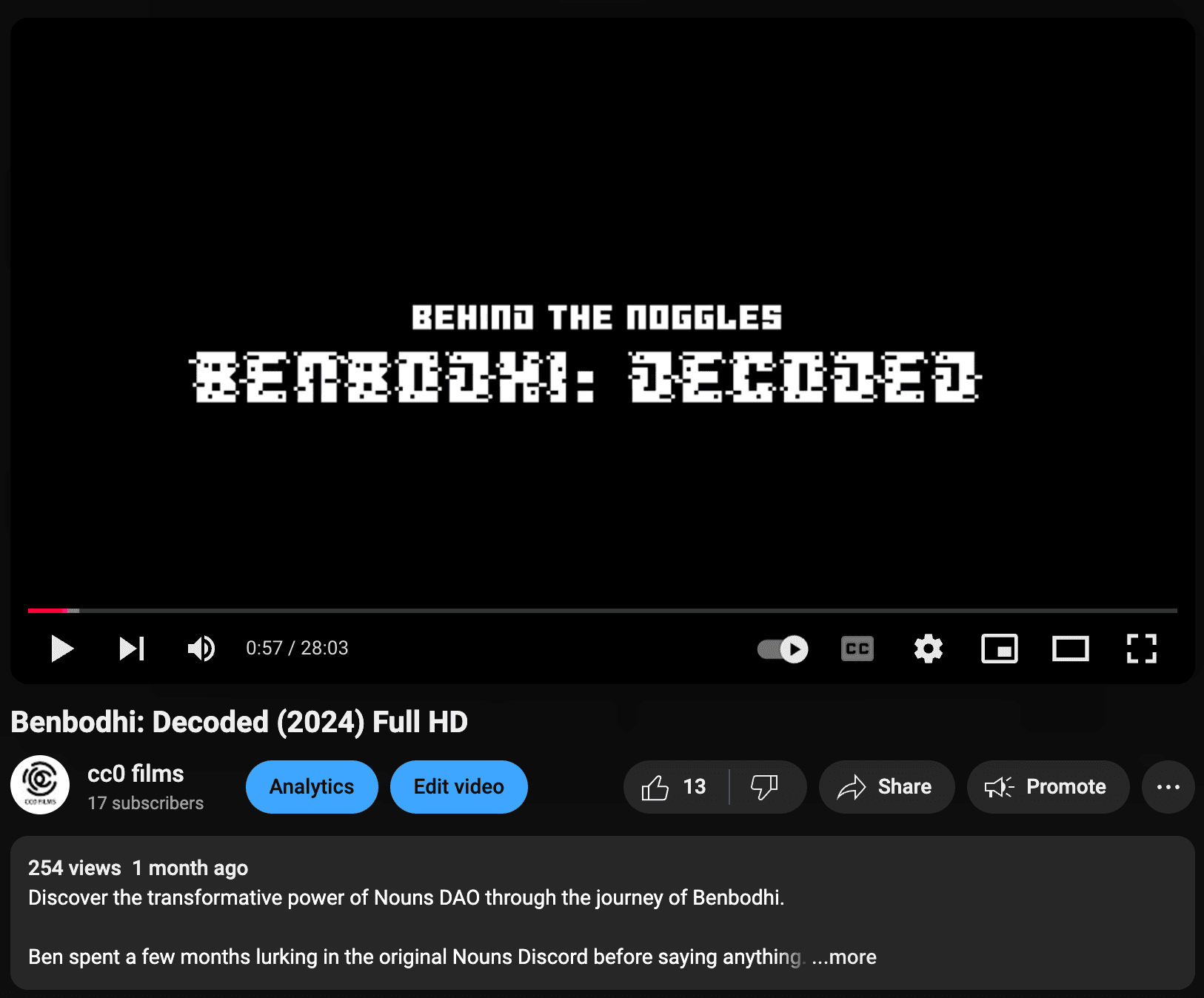 As with Benbodhi's documentary, our goal is to bring awareness to Nouns and inspire people to join us.