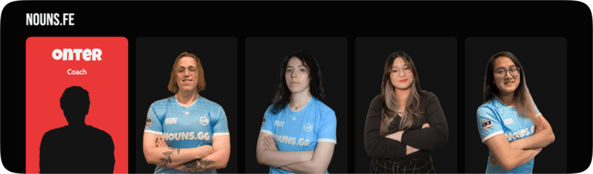 With growing results and undeniable charm, nouns.fe isn’t just made of pixels— we're a driving force, spreading silly nounish vibes across gaming and esports, and changing sentiments of web3 and crypto for the better.