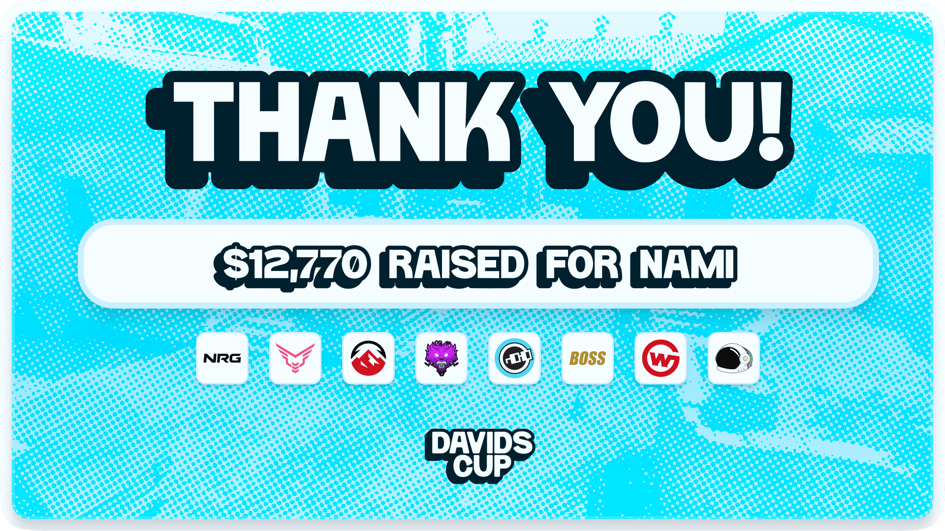 Last year we ran a CS2 charity event to honor the life of one of our former players, David 'Cynic' Polster, who passed away at the start of 2023. Alongside the Counter-Strike community, and with the help of over 22 notable Counter Strike figures and countributors, we raised $12,770 towards NAMI (National Alliance on Mental Illness.)