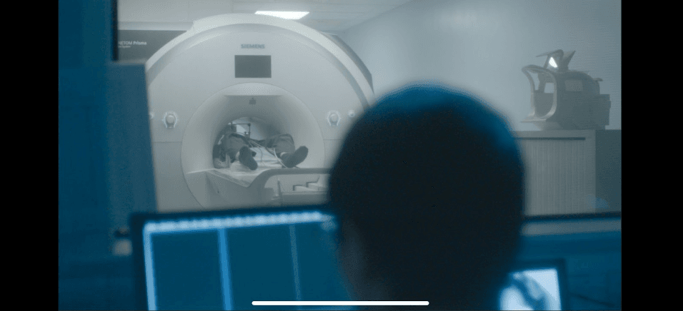 An Eyeforce documentary on breathwork: Dr. Guy W. Fincham preparing to go into MRI scanner at Brighton & Sussex Medical School to perform high ventilation breathwork (HVB).