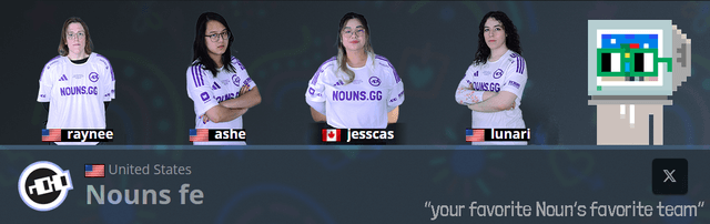 We are nouns.fe ✨ For those of you who are new members of the DAO, we are passionate marginalized competitors and contributors to the women's esports scene. Join us in our journey in trailblazing a path to the top, showing that the only thing that matters is turning dreams into goals, and working towards it. (+with the people you love!)