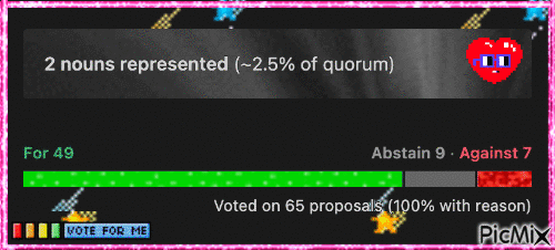 Since our delegation of Noun 117 and 271, we have voted on a total of 74 proposals with 100% VWR rate!