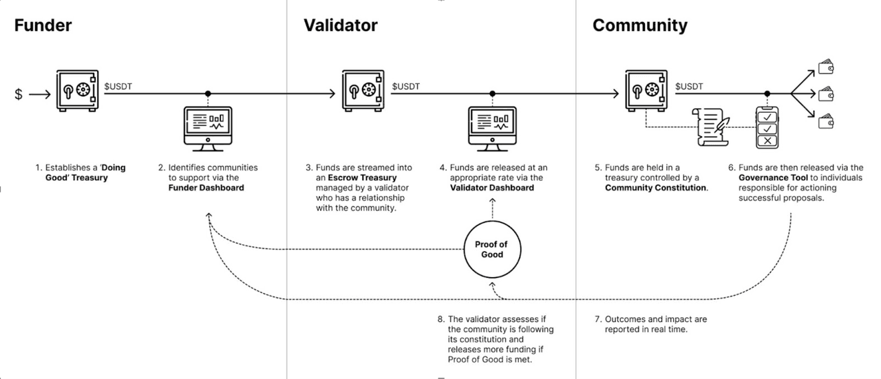 Any individual or entity who wants to use financial capital to do good in the world. Our focus is on the increasing number of well resourced DAO’s who may want to do good in the real world using Web 3 rails however it could theoretically range from a teenager with $40 through to high net worth individuals, foundations, government social welfare agencies.