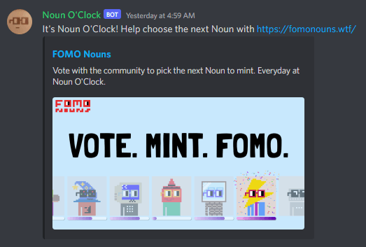 We have also completed a first version of Noun O'Clock bot that anyone can add. It is currently running in NIL and NounsDAO Japan.