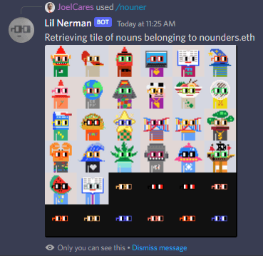Some people live in Discord.They live and breath Discord. They don't want to go on the internet to find Nounish facts and assets, they want it In-The-Chat. Nerman can... ah, whatever, you get it.