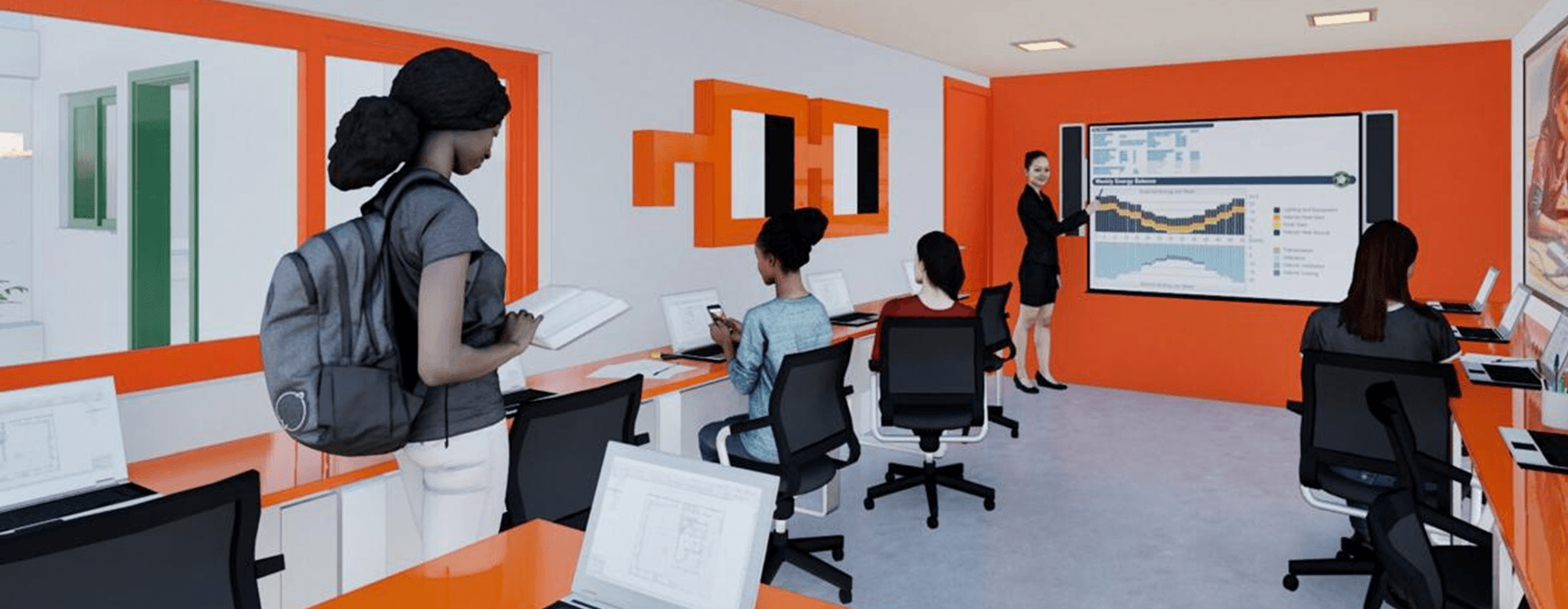 More areas 3D design created by an architectural team, envisioning how the school can be transformed with a more Nounish identity.