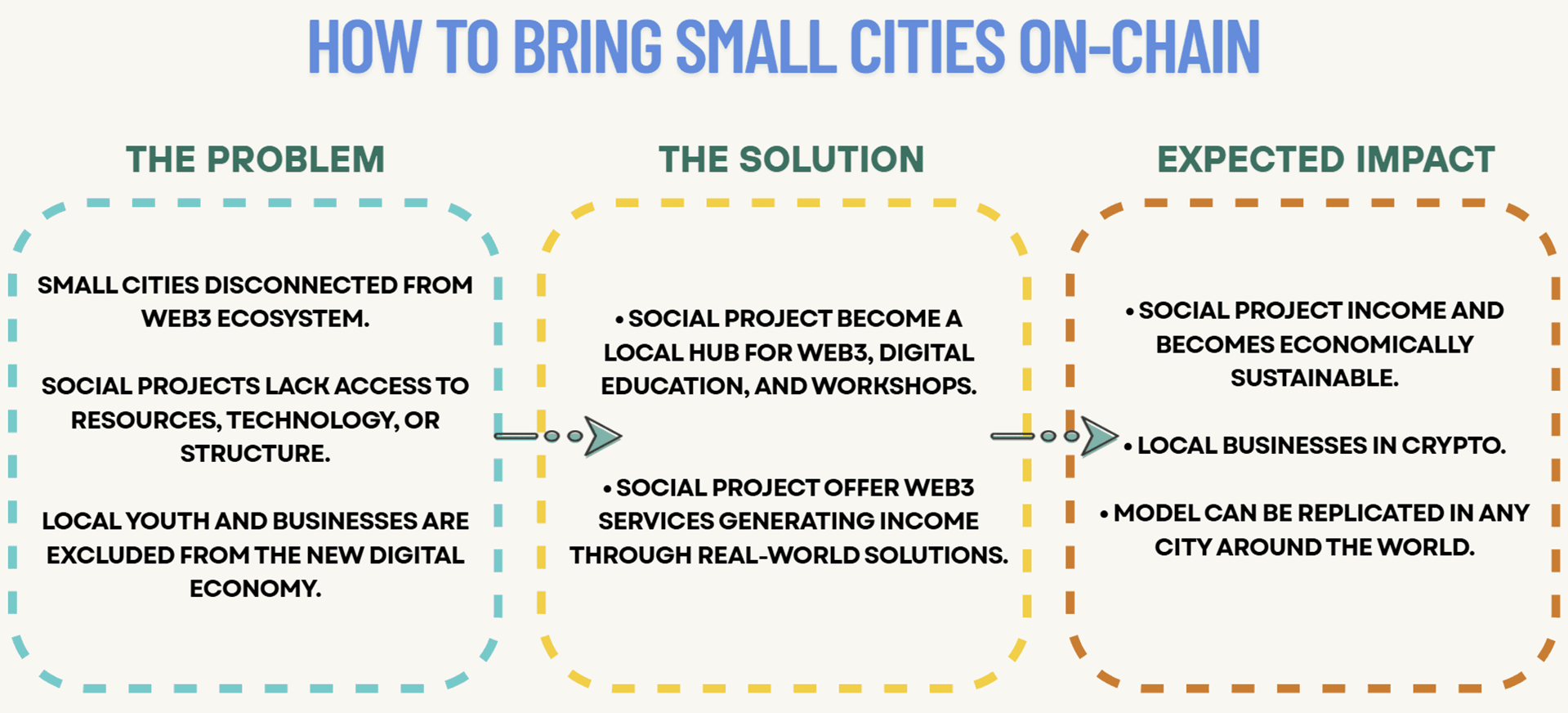 Rickyday, Samchalom and Bel, who personally know almost every business owner in town (a major advantage of small cities), will launch a Web3 consulting arm under Surf for Good to help local businesses come on-chain.