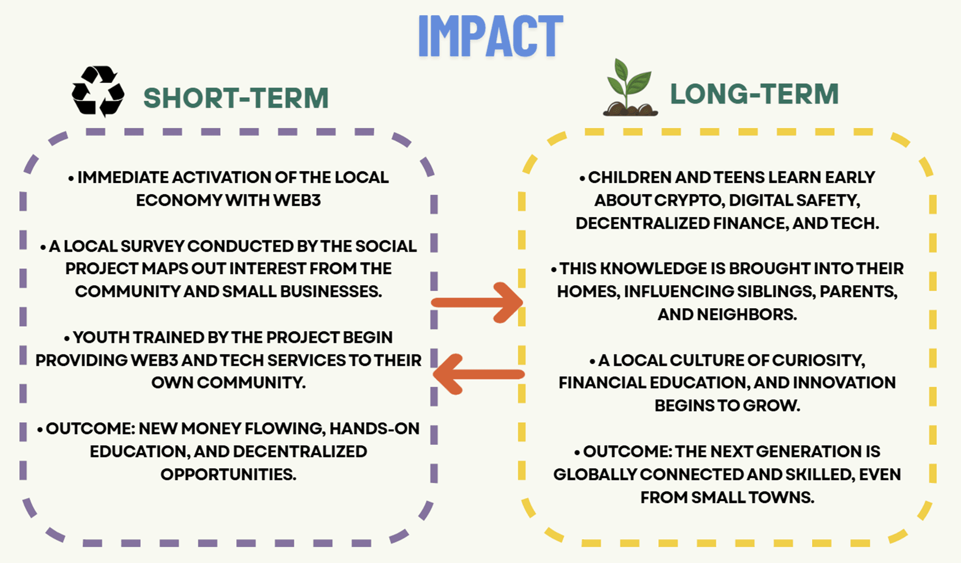 While the girls in the project are still learning and developing their skills, this initiative will already allow Surf for Good to generate revenue through crypto onboarding services, right after the research phase.