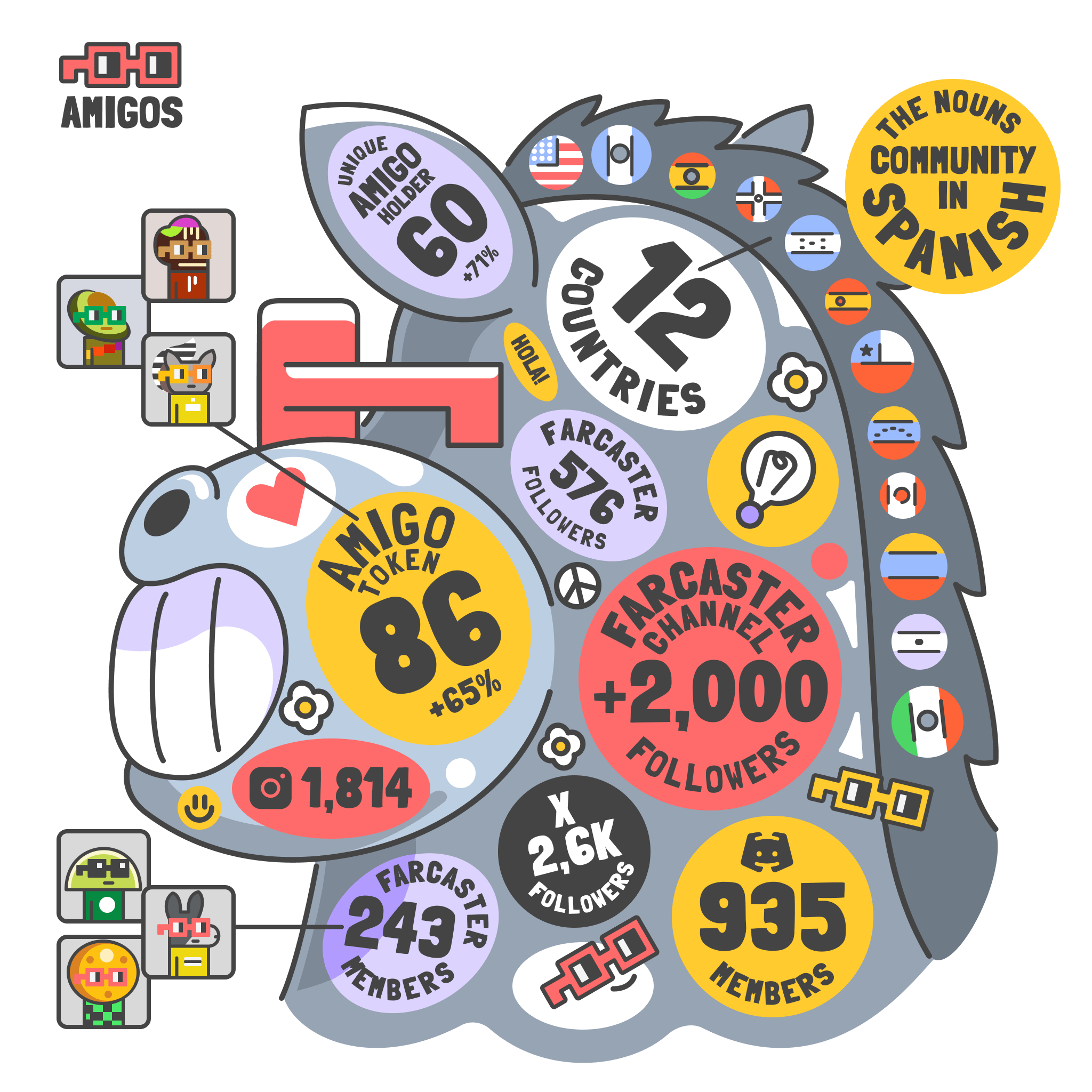 The Nouns Amigos community is a consistent group of high-quality builders pushing Nouns forward every day in Latin America. You can follow the community’s activity on IG, X, and Farcaster.
