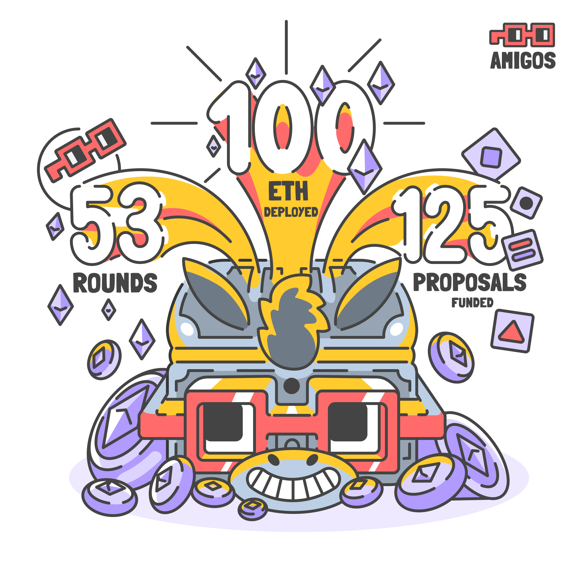 We request $50,000 to seed the Nouns Amigos grants program, funds which will be distributed to the community. Nouns Amigos holders will vote on grants. To learn more about how we've done it before, jump to the About section below.