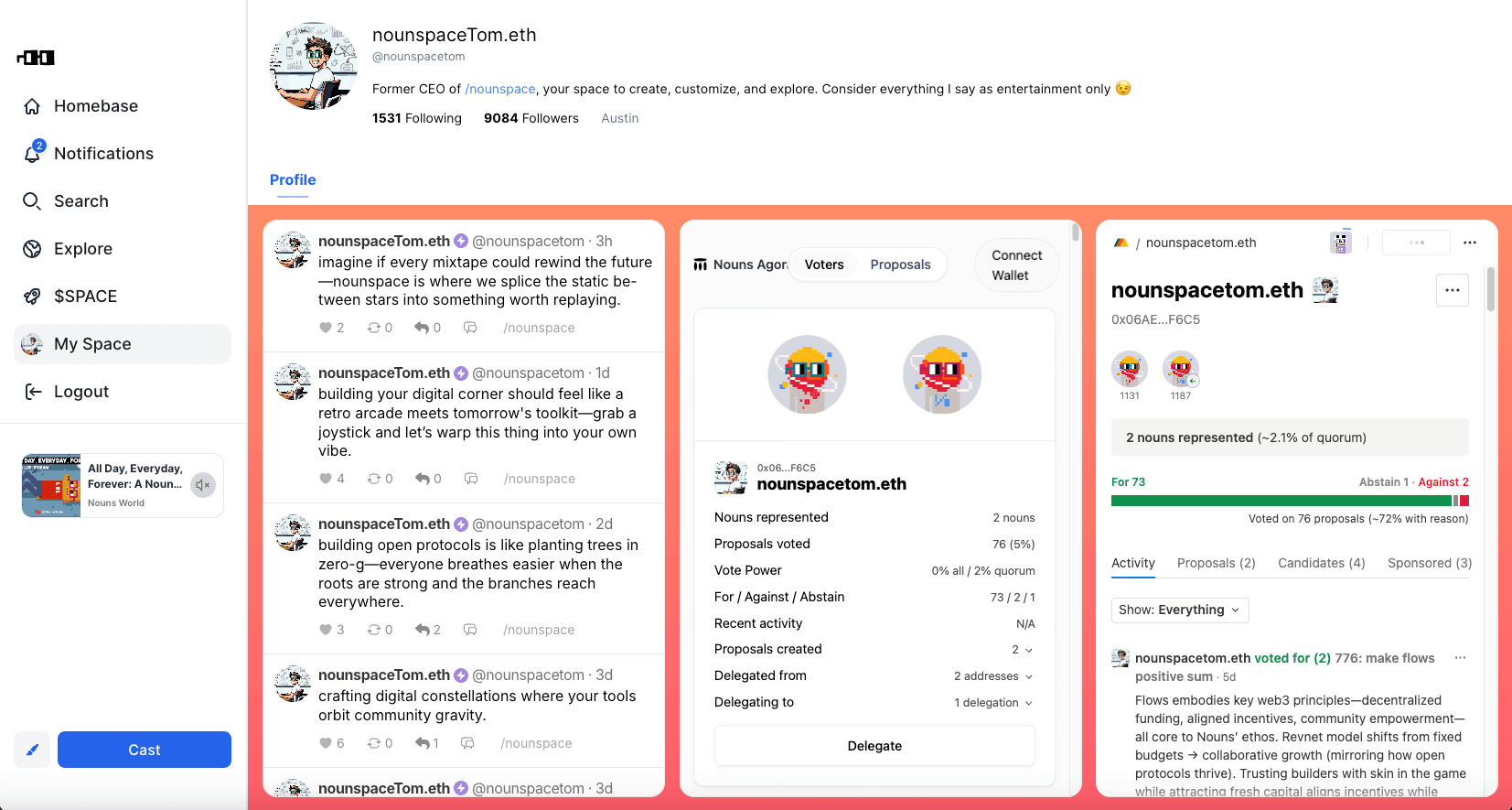 Noun.space is a customizable Farcaster client built for Nouns, by Nouns. Open-source, community-owned, and live now.