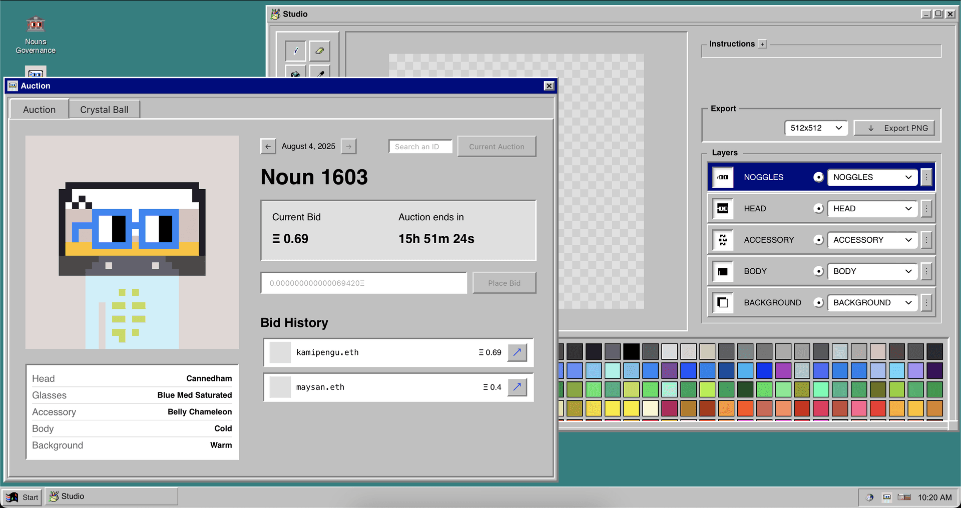 Nouns 95 is an Operating System in the Browser for Nouns.