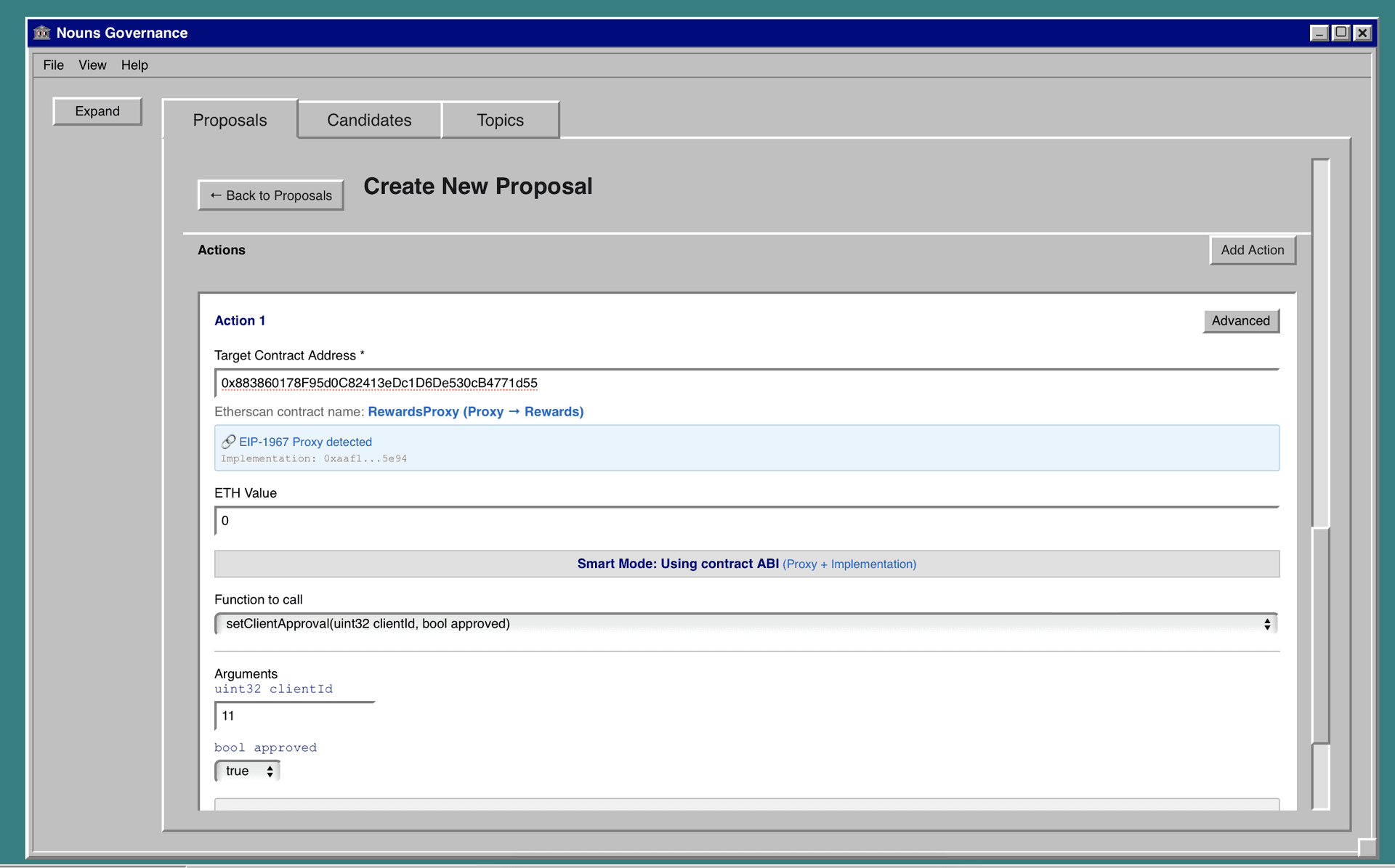 This proposal approves Nouns 95 to claim client incentives and support further development.