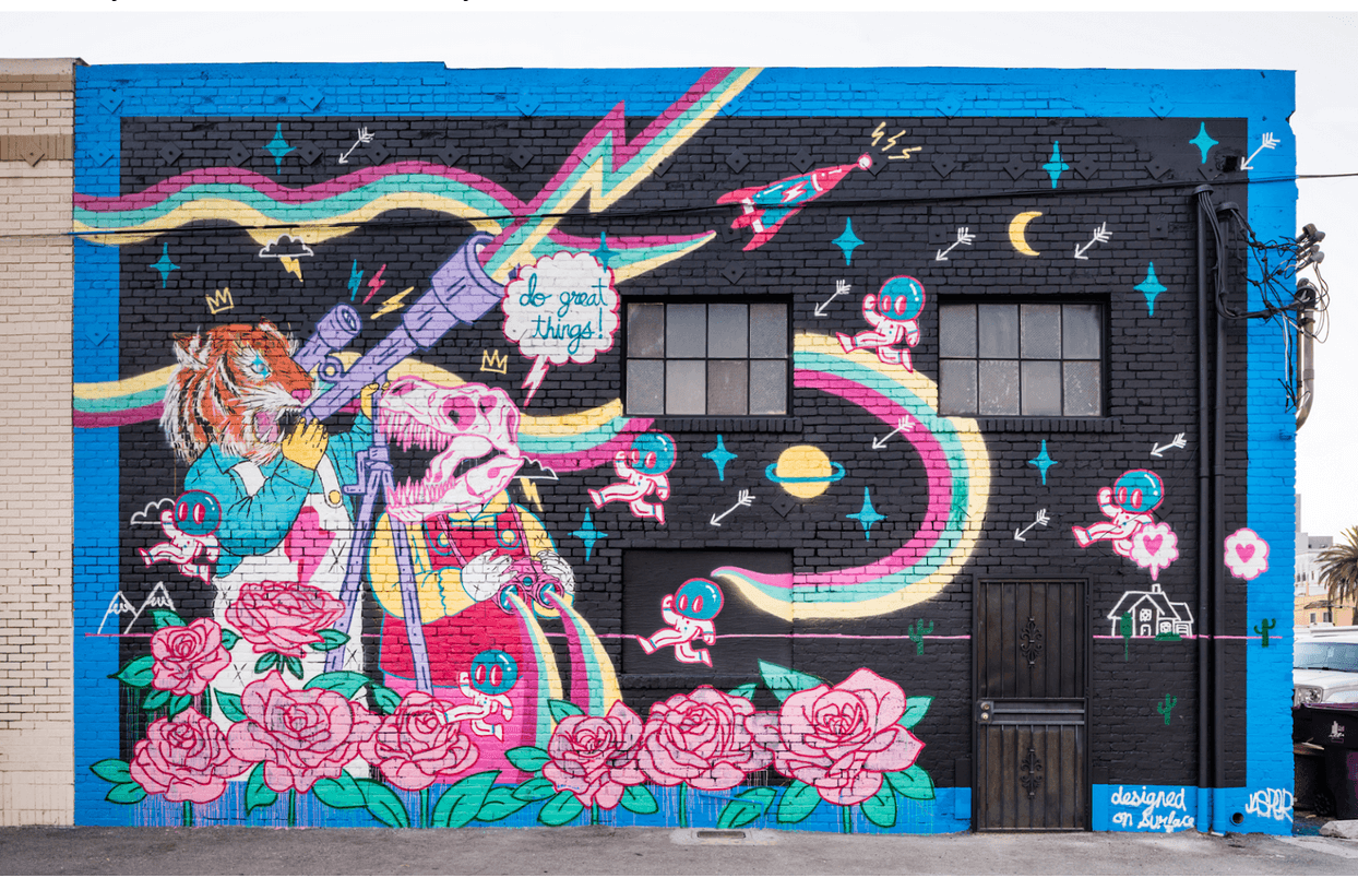 We have encouraged Jasper to create a mural in his style that is a conversational piece. The mural will act as an introduction to the crypto space for many newcomers, we hope that it inspires a sense of curiosity and an urge to dig deeper. For those in the know, the mural will act as a proverbial nod of acknowledgment to the projects that have made an impact and have shed a positive light on the crypto space in general. The mural will showcase popular CC0 and non-CC0 projects such as BAYC, Doodles, Moonbirds, Cryptoads, Chain Runners, CryptoPunks, Coolcats, World of Women, Creature World, DeadFellaz, Okay Bears, etc. Each of these projects have extremely large and very loyal followings which we believe will ensure that the mural reaches the widest audience possible. The goal is to create a compelling piece which shows unity within the crypto space and inspires the viewer to get involved.