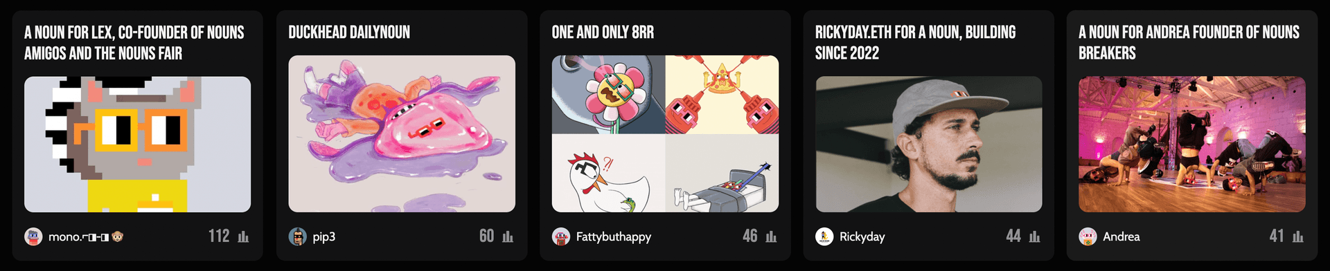 I propose awarding five more Nouns to the most voted proposals, in addition to the ones that already won.