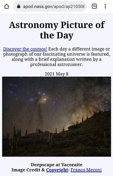 Deepscape the core of the Milky Way rises over the archaeological site of Yacoraite in the Andes. Image selected as NASA’s Astronomy Picture of the Day on May 8th 2021.